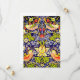 Card featuring William Morris’ textile design Strawberry Thief (1883). Four colourful birds steal strawberries amidst a vibrant flower background. A wonderful gift for animal lovers and Victorian art enthusiasts.