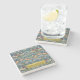 The coasters are gorgeous, a quality feel and heavy weight. They look like a precious archeological find. A rustic stone juxtaposed with a modern floral black and white print. I like the way the print goes slightly imperfect on the cut stone edges giving them a kind-of natural beauty.