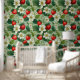 Strawberry White Blossoms Watercolor Spring Floral Wallpaper