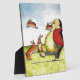 Here we have a portly gentleman with a receding hairline, wearing a red jacket with gold buttons and plaid pants, his arms flailing backwards and one leg in the air. A brown rabbit is emerging from his open mouth, while two other rabbits sit on the grass and another is leaping through the air. Silly illustration by Edward Lear on the cover of "The Complete Book of Nonsense and Other Verse". Edward Lear (12 May 1812 – 29 January 1888) was an English artist, illustrator, author and poet , known principally for his popular nonsense works, which use real and invented English words.