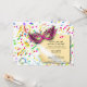 Confetti on the back of this party invitation card. Party streamers and confetti on the front of the card. A face mask and a note to come to the party. Celebrate the New Year with this fun New Year's Eve party invitation. Fill in the information for your party gathering.