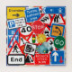 These colorful road signs from the United Kingdom, look so good against a Union Jack flag background, great puzzle for young people and probably the men folk will specially enjoy too. Great for kids, as they send out a good road safety message.