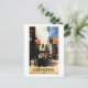 Street View with Couple & Tower Clock Rail Postcard