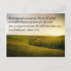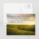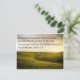 Postcard with a photo of a beautiful green landscape with bright sunshine coming over the hills. The Bible verse Deuteronomy 31:6 is printed at the top, "Be strong and courageous. Do not be afraid or terrified because of them, for the Lord your God goes with you; He will never leave you nor forsake you."