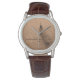 The watch looks really great! Very sharp and well done. The leather band is really nice, though for a man's watch I think it should be longer. Unfortunately, it isn't big enough for my husband's wrist but I will get a replacement because he is very excited to wear it!