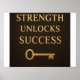 A premium motivational poster featuring the powerful quote “Strength unlocks success.” Designed with a bold, elegant aesthetic and a luxurious dark golden background, this artwork symbolises resilience, determination, and the drive to achieve greatness. Perfect for gyms, offices, or personal inspiration spaces.