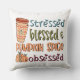Stressed Blessed & Pumpkin Spice Obsessed Autumn Fall Thanksgiving Throw Pillow