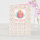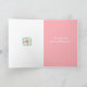 A light hearted encouragement card featuring a dessert theme with a pink petit four in a candy wrapper illustrated with watercolor and hand painted dessert words in the background in shades of caramel, strawberry, and chocolate. On the inside is another petit four candy and a warm shade of pink with white text that you can customise.