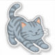 Cute cartoon illustration of a grey tabby cat having a good stretch.