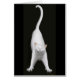 Orignal fine art design of a stretching white cat by designer/illustrator Carolyn McFann of Two Purring Cats Studio on a customisable greeting card for cat lovers.