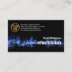 Cover features a blue electrical lightning that powers up the job title "electrician" and your prestigious name. ; You can change the caption remarks to the job title to suit your own publicity needs. At the top left corner lies a gold "power plug sprocket" logo you can use with its contact details and a slogan beside it.