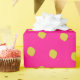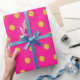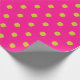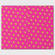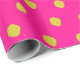 This wrapping paper is covered in striking lime green polka dots on a fuchsia background.