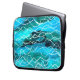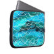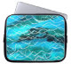 A very distinctive Laptop Sleeve in a brilliant turqoise, black and white, abstract 'Waves' pattern, from a handpainted watercolour design by Judy Adamson.