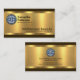 A brown cover is accentuated by striking faux gold lines layer. At the top left corner is a gold global logo you can use with your your prestigious name and a slogan caption beside it. At the base of the card is the business name and its contact details.