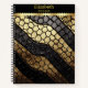The intricate design of a black and gold snake skin showcases a mesmerising pattern that glistens in the light. The scales are arranged in a striking hexagonal formation, highlighting nature's artistry. MONOGRAM
