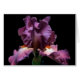 A solitary purple bearded iris with creme and orange centre assumes a striking pose.