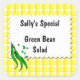 A custom canning or craft label with cute retro green string or snap beans with bean sprinkles, a white doily and two lines for your custom text, click Customise It to add or delete lines, change fonts or background colours!