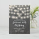 Rustic birthday invitation featuring strings of lights with chalkboard background.