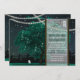 String Light Mason Jar Firefly Wedding Invitations - themed in a rustic or country scene that features an oak tree peppered with fireflies and a mason jar filled with a few lightning bugs inside. The background features a starry night sky with a fence. The top has two sets of string lights with a carved heart that you can change to the initials of your choice.