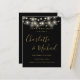 Featuring pretty string lights and signature style names, this elegant black and gold save-the-date card can be personalized with your special wedding day details in modern gold lettering. Designed by Thisisnotme©