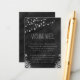 © Sunny Mars Designs. String of Lights Black Chalkboard Vertical Wishing Well Cards – Modern, elegant, trendy, chic customisable formal 2.5" x 3.5" wedding wishing well card with a beautiful black chalkboard design featuring bulbs of rope or string lights hanging above with a floral tropical design below.