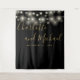 Featuring pretty string lights and chic typography script, this chic black and gold wedding photo booth backdrop can be personalized with your names and special date. Designed by Thisisnotme©