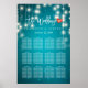 12 Tables Wedding Seating Chart Poster Templates - Elegant Lettering Script and Vintage String Lights with Turquoise Blue Glitter Sparkle Background.