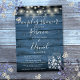 A rustic couples wedding shower invitation featuring pretty string lights and mason jars with stylish script typography, on a blue rustic wood background. Designed by Thisisnotme©