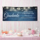 String Lights Blue Rustic Wood Graduation Banner