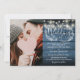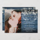 String Lights Blue Rustic Wood Photo Wedding Invitation