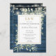 Featuring delicate watercolor greenery and pretty string lights on a blue rustic wood background, this chic couples shower invitation can be personalised with your gold monogram initials and special bridal shower information. Designed by Thisisnotme©