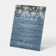 String Lights Blue Wood Wedding Drinks Menu Pedestal Sign