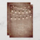 Vintage Edison string lights hanging from top over weathered rustic brick background. All purpose party invitation suitable for birthday, wedding, open house, housewarming, professional, grand opening, anniversary, dinner party, etc.