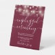 String Lights Burgundy Unplugged Ceremony Pedestal Sign