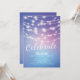 Modern string lights celebrate birthday invitation set on a purple/blue background. View our matching back for an extra special touch.