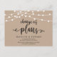 This is the modern minimal Rustic Kraft String lights, in Black font, Wedding party invitation Rescheduled (postponed / postponement) postcard (Change of date) . It is the perfect to make the reschedule announcement to your friends and family.