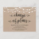 This is the modern minimal Rustic Kraft String lights, in Black font, Wedding party invitation Rescheduled (postponed / postponement) postcard (Change of plans) . It is the perfect to make the reschedule announcement to your friends and family.