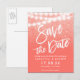 String lights coral glitter bright save the date announcement postcard
