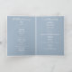 Dusty blue signature script wedding program featuring pretty string lights and chic modern typography. This stylish wedding program can be personalised with your special wedding day information. Designed by Thisisnotme©