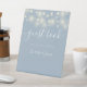 String Lights Dusty Blue Script Guest Book Pedestal Sign