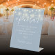 Featuring pretty string lights, this elegant script dusty blue open bar sign is perfect for all celebrations. Designed by Thisisnotme©