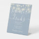 String Lights Dusty Blue Wedding Signature Drinks Pedestal Sign