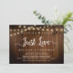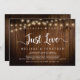 Beautiful Nothing Fancy, Just Love party, Wedding Elopement Announcement / Invitation card, in Modern Rustic Cottage Brown Dark wood, String Lights design. This is perfect for your wedding reception and post-wedding celebration party. Add your details in matching font / lettering.