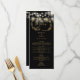 Featuring pretty string lights and rustic floral garland hand-drawn illustrations, personalise this stylish black and gold menu with your special wedding day menu information. Designed by Thisisnotme©