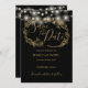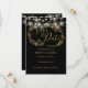 A stylish black and gold save-the-date card featuring pretty string lights and delicate floral illustrations. Personalise with your special save-the-date information. Designed by Thisisnotme©