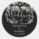 String Lights Floral Black And White Wedding Classic Round Sticker