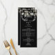 Featuring pretty string lights and rustic floral garland hand-drawn illustrations, personalise this stylish black and white menu with your special wedding day menu information. Designed by Thisisnotme©