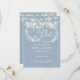 A stylish dusty blue save-the-date card featuring pretty string lights and delicate floral illustrations on a black background. Personalise with your special save-the-date information. Designed by Thisisnotme©