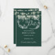 A stylish emerald green save-the-date card featuring pretty string lights and delicate floral illustrations on a black background. Personalise with your special save-the-date information. Designed by Thisisnotme©