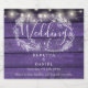 Featuring pretty string lights, this elegant wedding design can be personalised with your information in elegant lettering on a rustic purple wood panels background. Designed by Thisisnotme©